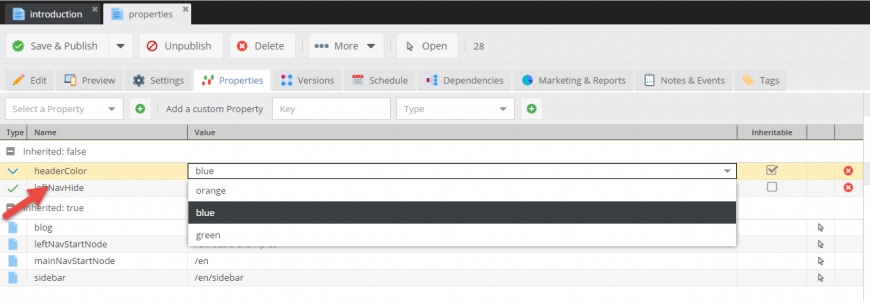 Properties are very useful to control the behavior or to store meta data of documents, assets and objects. And the best: they are inheritable.
